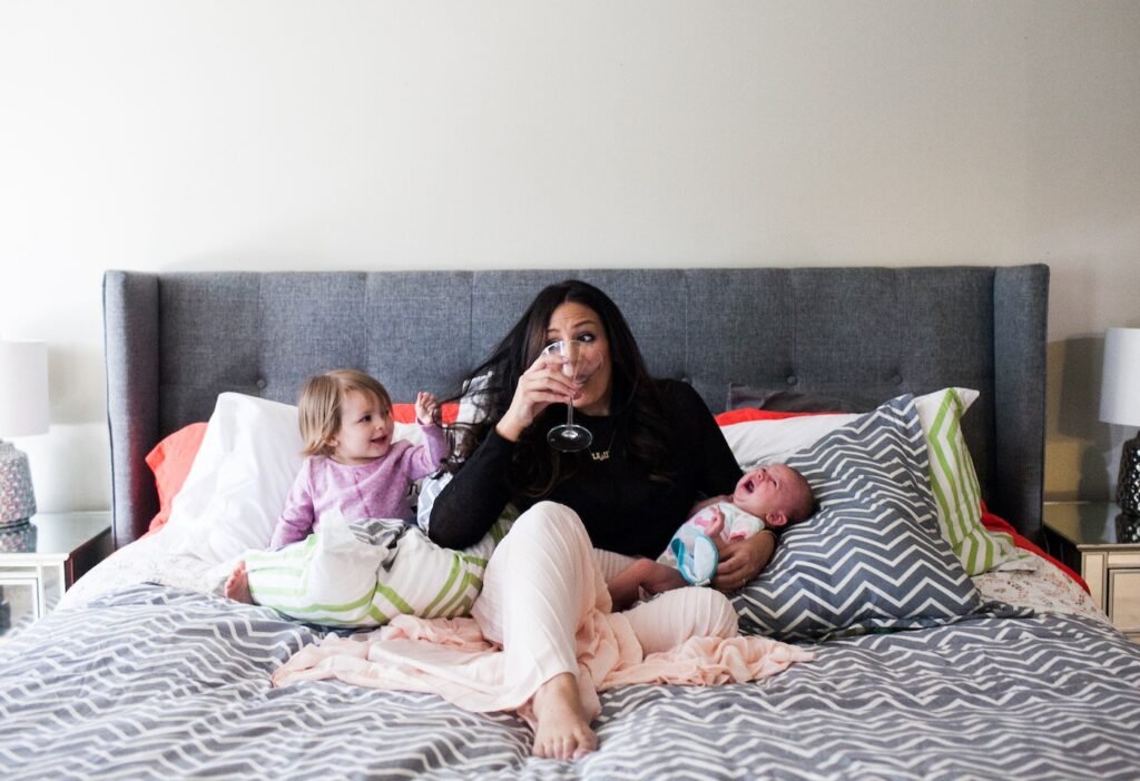 Esta foto es divertidísima, ¿verdad? Probablemente resuena con tantas mamás… Fue tomada a principios de septiembre de 2015. Aria Sofía tenía 20 meses, Isabela Lucía tenía seis semanas y Brian, mi esposo, en la Marina, había estado fuera del país desde el 8 de marzo de ese año. En esta imagen, lo que NO se puede ver es la depresión posparto que ya había comenzado a asentarse. Quizás estaba allí, escondiéndose incluso antes de que Isabela naciera, tratando de abrirse camino. Recuerdo estar sola en esa sala de parto durante horas y haberme sentido bien con mi decisión de dar a luz sin nadie más que el personal médico en la habitación. Quizás no estaba bien. Sé que después de que llegó mi hija, mis emociones fueron completamente diferentes y nada en el interior se sentía «bien». No tenía el mismo deseo feroz de vincularme con ella como había experimentado 20 meses antes con Aria.